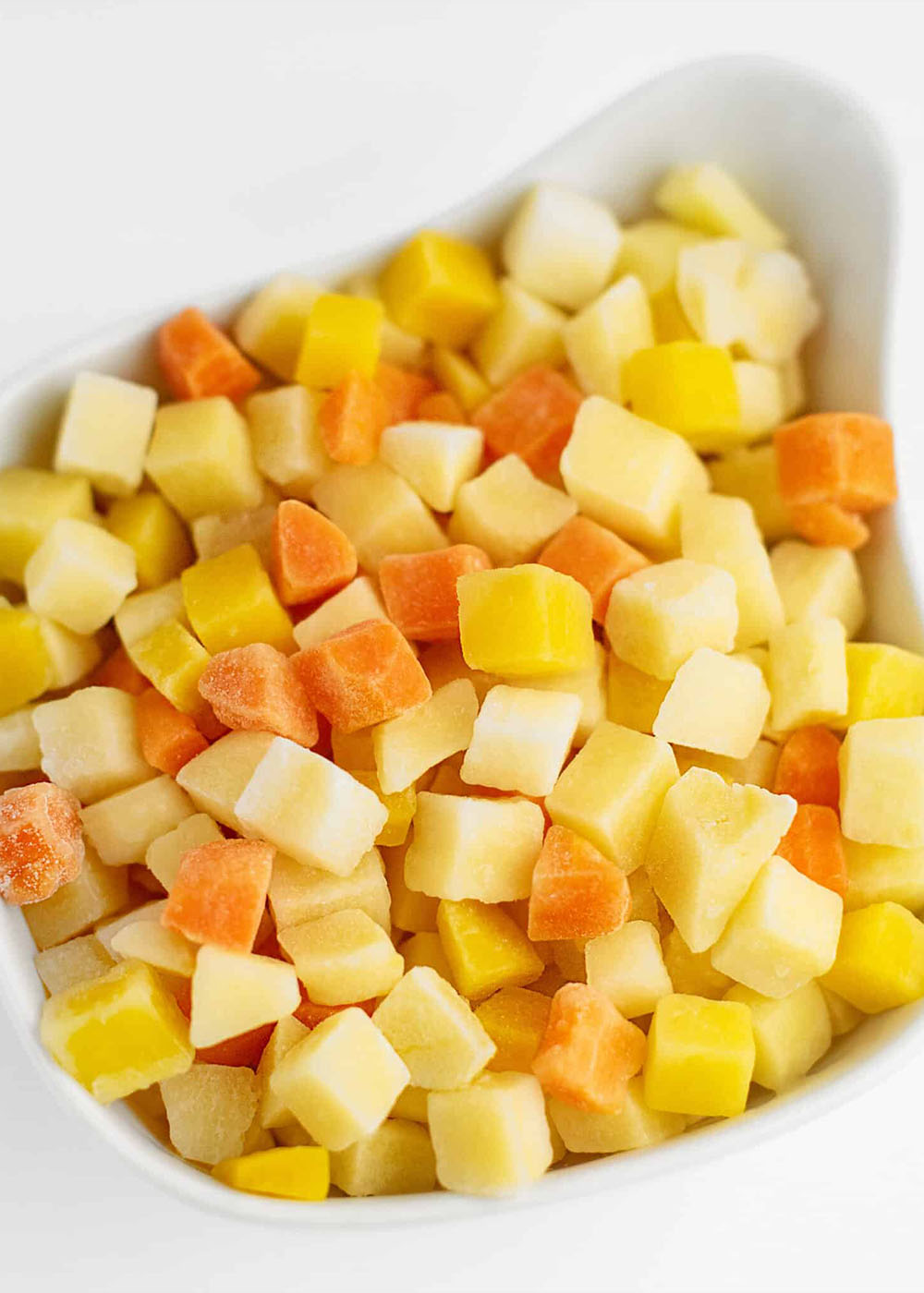 En skøn økologisk og vegetarisk biksemad. Her får du en pose med fint skåret tern af Kartofler, roe, pastinak og gulerod, som desuden er forkogt. Perfekt som dejlig base til din biksemad eller suppe. Varm den med fordel direkte fra frost på panden, med lidt olie, hvis den skal bruges som biksemad.