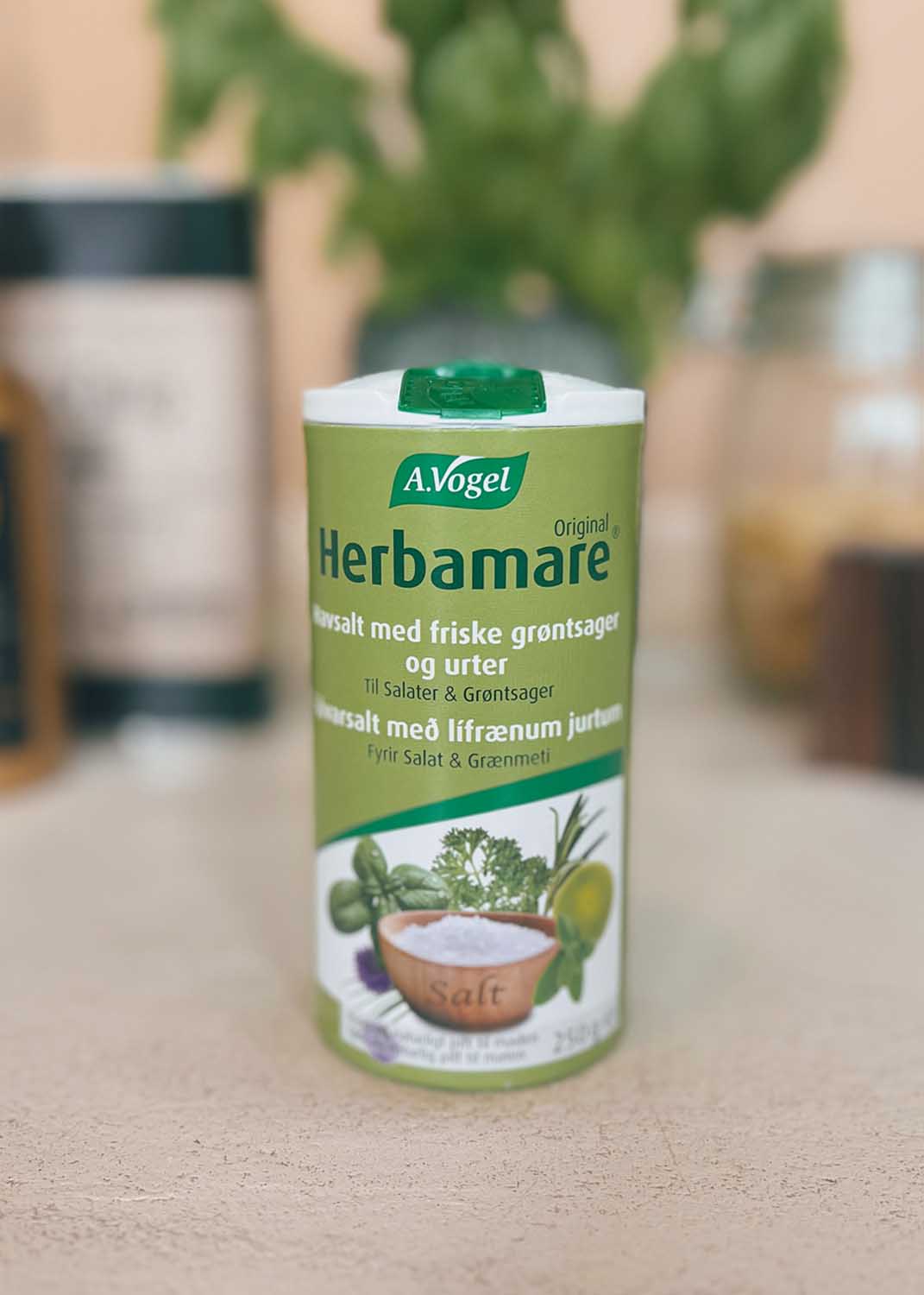 Herbamare Urtesalt er en økologisk krydderisalt lavet på havsalt og en unik blanding af friske, økologiske urter og grøntsager. Saltet har en aromatisk, grøn smag med noter af bl.a. purløg, persille, selleri og basilikum, som giver et frisk og naturligt løft til dine retter. Perfekt til at krydre alt fra grøntsager og salater til æg, kød og fisk – eller som et smagsgivende alternativ til almindeligt salt ved bordet.