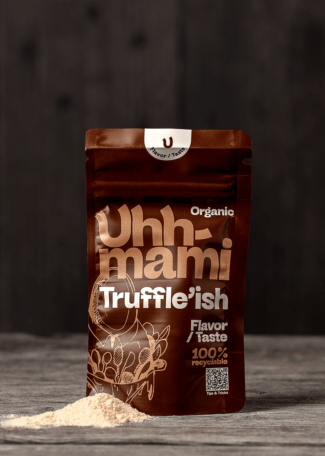 Truffle’ish er et ideelt alternativ eller supplement til ægte trøffel. Den fungerer fremragende i pasta, risotto og fyld, og er perfekt til marinering af grøntsager. Drys det over dine retter for at tilføre aroma og dybde. Prøv det i din Truffle’ish mayo eller i saucer og dressinger for ekstra smag og karakter. Uhhmami er både plantebaseret, uden allergener og farvestoffer.